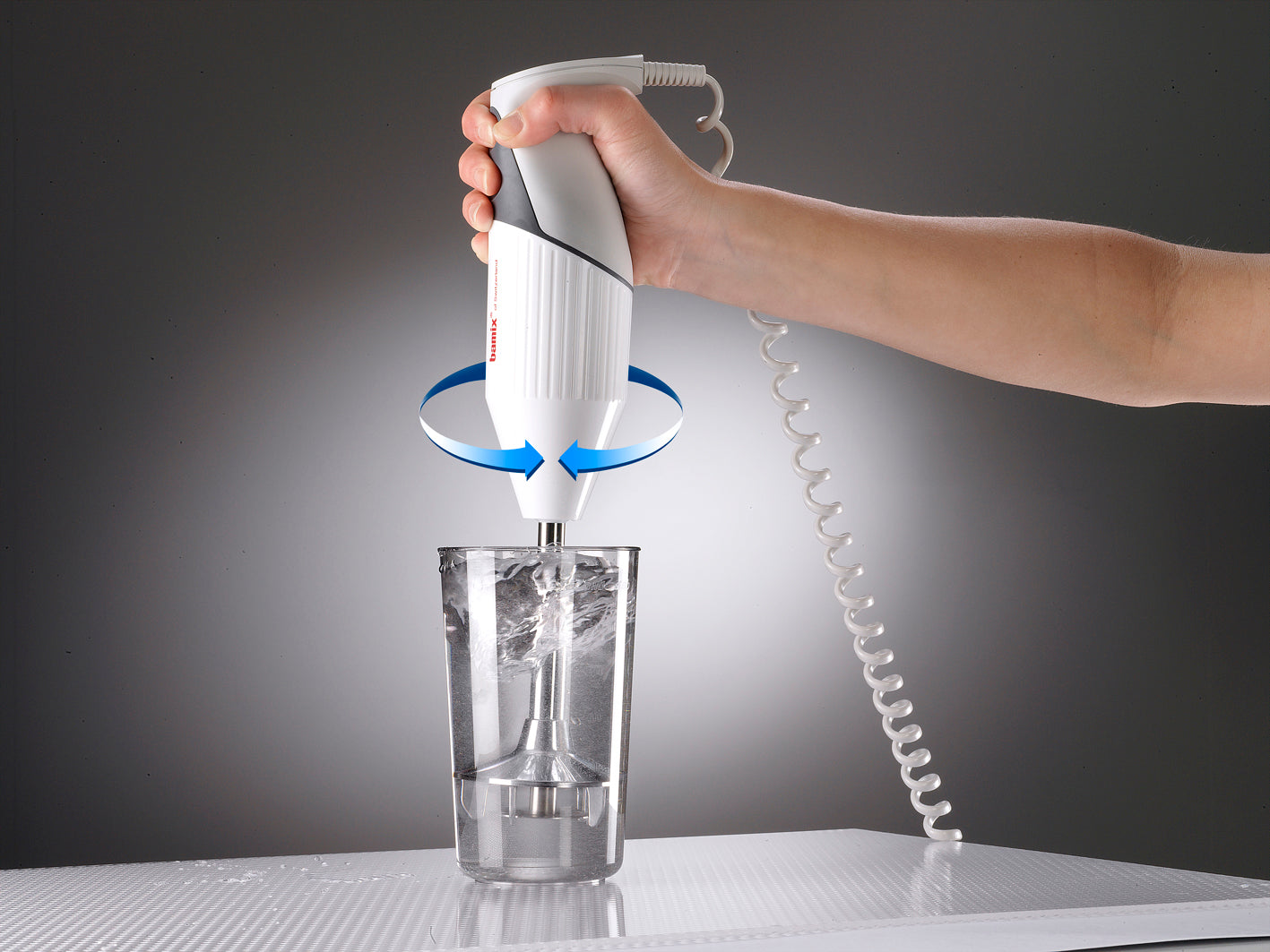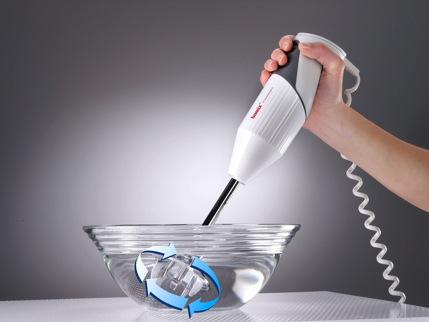 For thorough cleaning, immerse the bamix® in warm water with a drop of detergent and run it for a few seconds.
