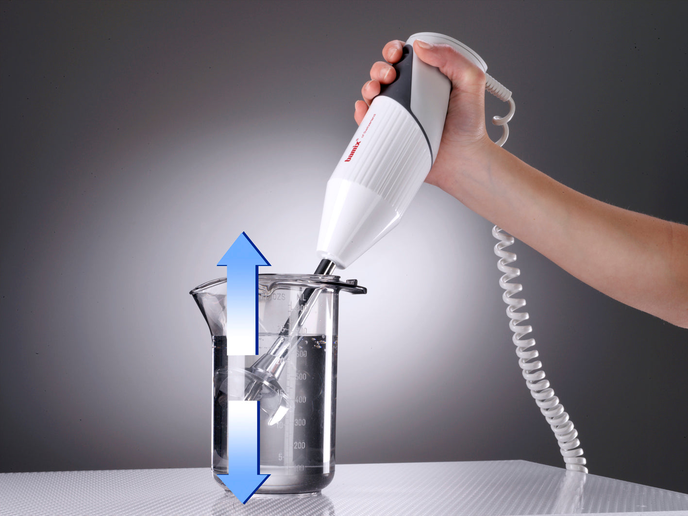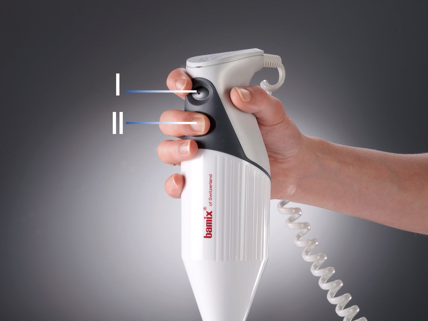 Lift the bamix® slightly and let it glide back down. Do never press or pound.